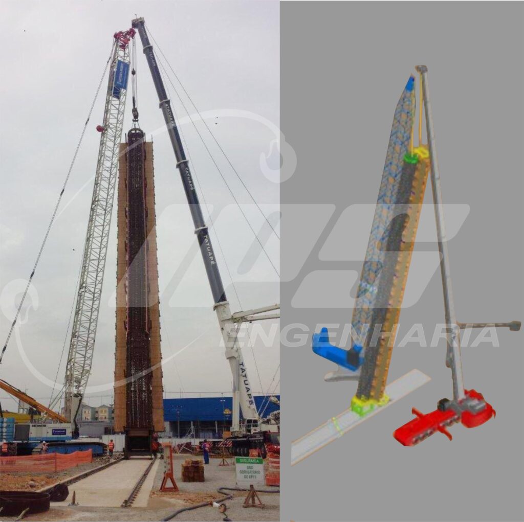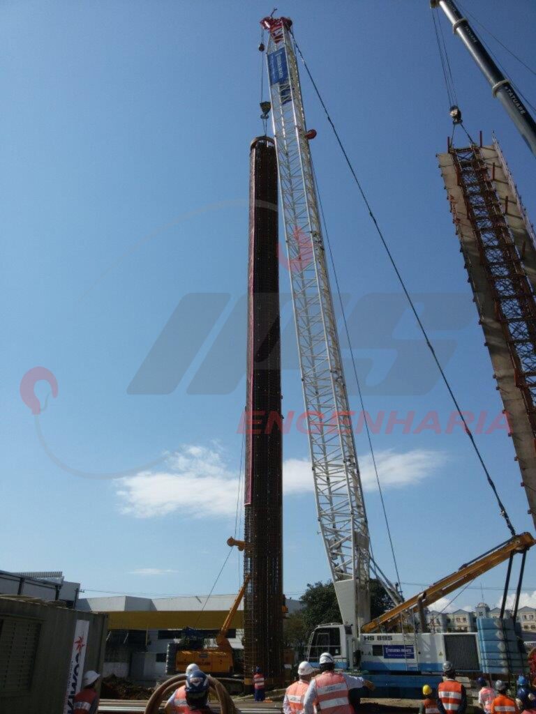 A armação do estacão, que só foi possível ser montada horizontalmente sobre o terreno, precisaria ser verticalizada. Devido a grande densidade de barras presentes em seu interior, resultantes das exigências do projeto, esta armação poderia deformar-se durante esta operação, a solução encontrada em conjunto com a equipe técnica foi construir um berço para servir de apoio para a armação durante sua verticalização.