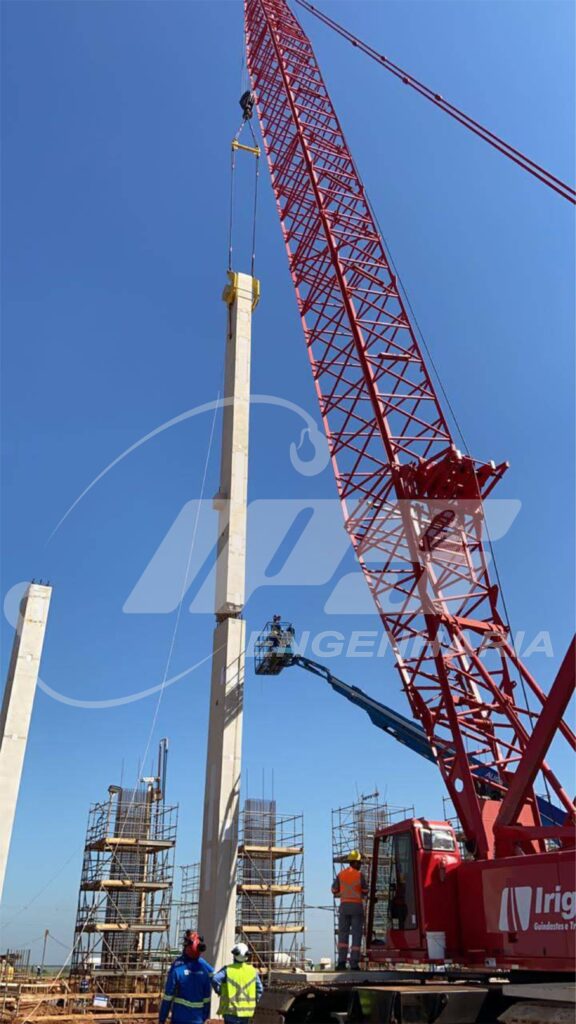 A operação da verticalização de pilares pré-moldados é uma atividade bem conhecida pelas equipes de infraestrutura. Geralmente os pilares são verticalizados e ao ficarem na vertical, os laços de aço entram em contato com os consoles.